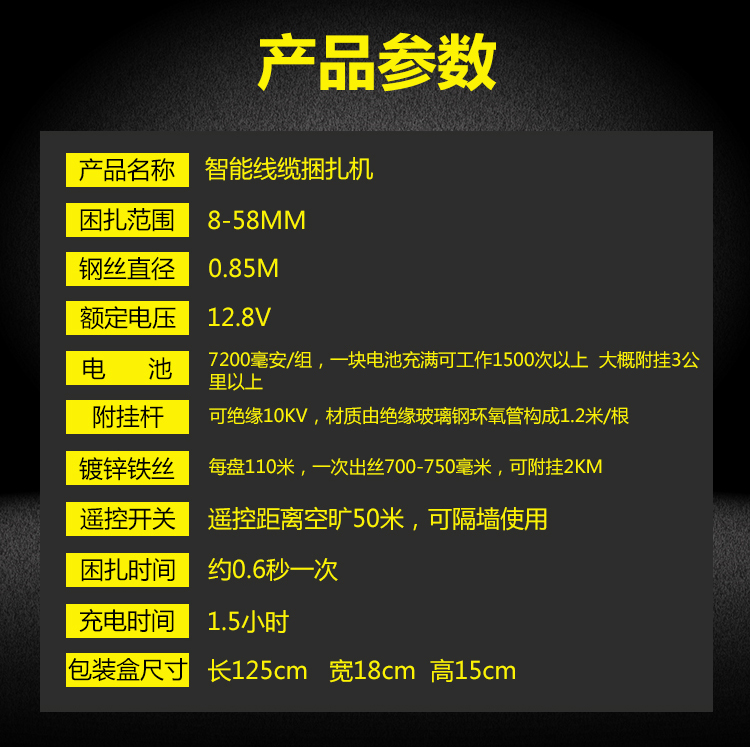 電壓:12.8V 捆扎范圍:8-58 mm 捆扎時(shí)間:0.8秒每次