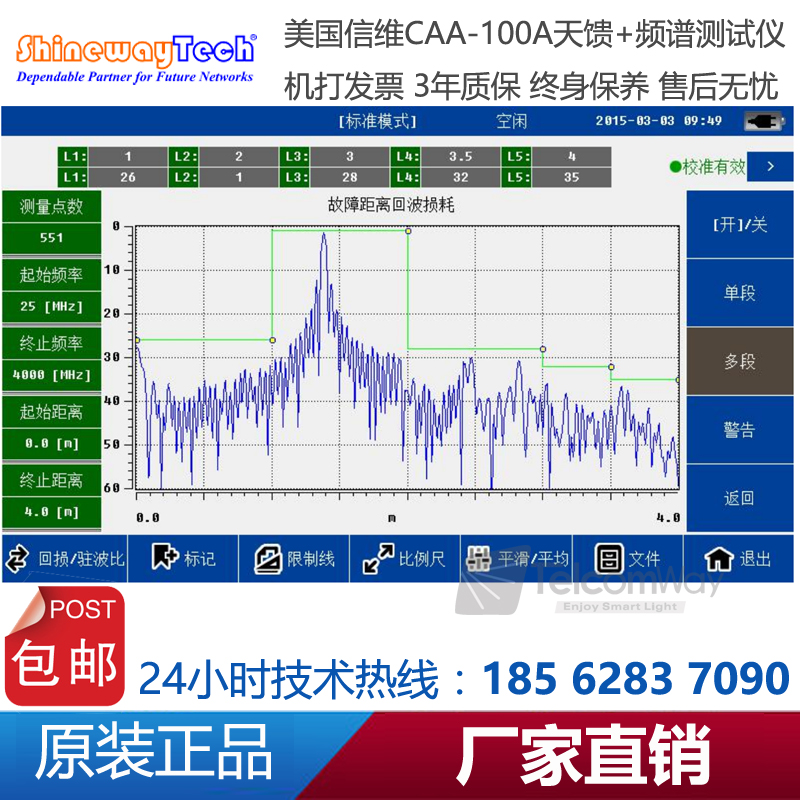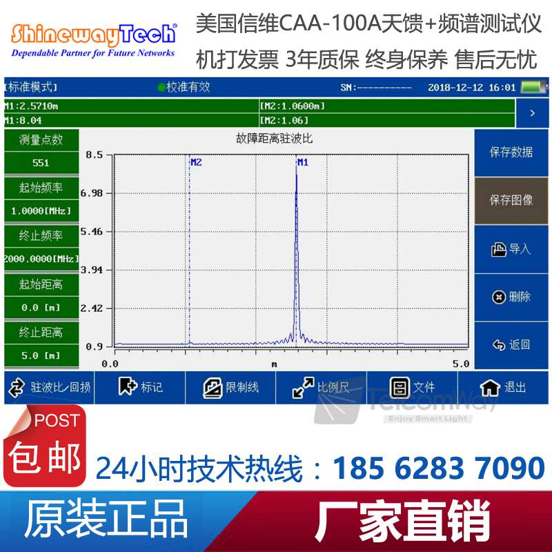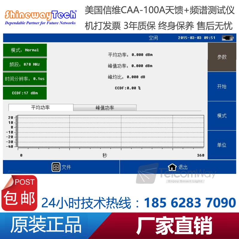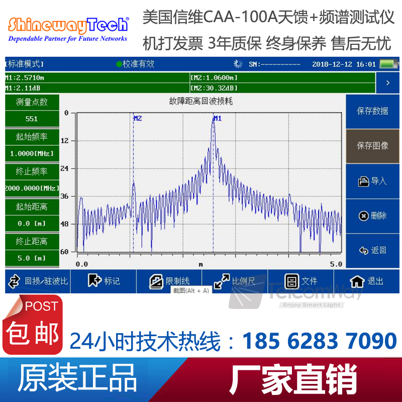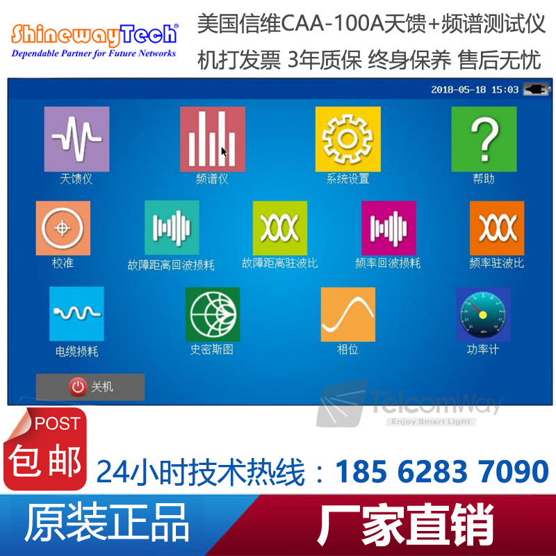 CAA-100A系列天饋線頻譜測試儀是一款由信維科技?推出天線、饋線、電纜測試,射頻功率測試,以及頻譜分析測量的綜合性儀器。CAA-100A的天饋功能能夠測試基站天線和饋線的駐波比和匹配性及電纜損耗和長距離故障定位,快速評估傳輸線和天線系統(tǒng)的狀況,縮短新基 站所 需 要的 安 裝調(diào) 試 時 間;1MHz~4.4GHz超寬測試頻率范圍,60dB超大動態(tài)范圍,多種選件功能廣泛適用于2G/3G/4GWiFi等制式下測試。頻譜分析模塊覆蓋頻率范圍300MHz-4GHz,100dB超大動態(tài)范圍,-130dBm平均噪底@RBW=1kHz,提供頻譜測試、干擾排查等測試。CAA-100系列25MHz~4GHz超寬測試頻率范圍,60dB超大動態(tài)范圍,多種選件功能廣泛適用于2G/3G/4G/WiMAX等制式下測試。CAA-100系列采用7寸超大觸摸屏設(shè)計,8小時超長續(xù)航時間,用戶體驗極好。CAA-100系列是新一代無線網(wǎng)絡(luò)建設(shè)、升級、維護必不可少的測量工具。