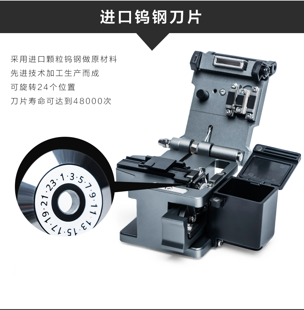 切割過程操作簡便,切割精確,斷面平整,適用適用于250um~900um被覆光纖,刀片壽命可高達48000次。