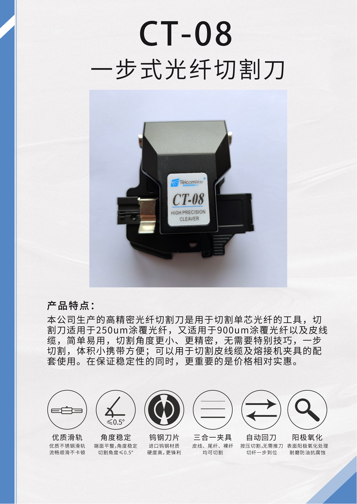 TelcomWay高精度一步刀國(guó)產(chǎn)CT-08光纖切割刀光纖切割器FiberCleaver